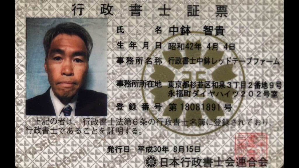 A member of Tokyo Certified Administrative Procedures Legal Specialist Association